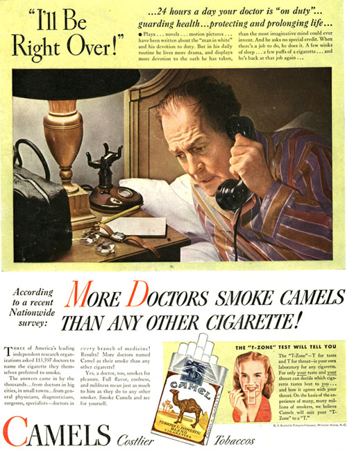 When you went to the Dr. the waiting room was full of ashtrays and people smoking. When you got in the Dr.'s office, he had an ashtray on his desk and you could smoke there. You could smoke any and everywhere. On buses, in taxis, restaurants, movies...everywhere. Why? Because no one ever talked about smoking being bad.